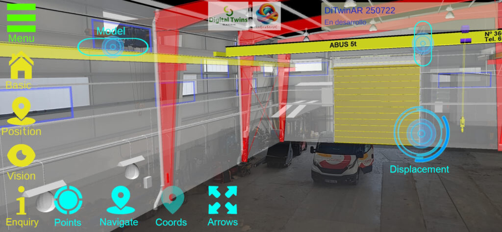 El núcleo de la aplicación desarrollada es un gemelo digital 3D de la instalación, construido mediante Building Information Modeling (BIM) y enriquecido con una base de datos estructurada que incluye información constructiva y atributos asociados al ciclo de vida de los activos. La precisión del modelo, aspecto crítico en este tipo de soluciones, se aborda con especial cuidado para garantizar la fiabilidad del sistema.