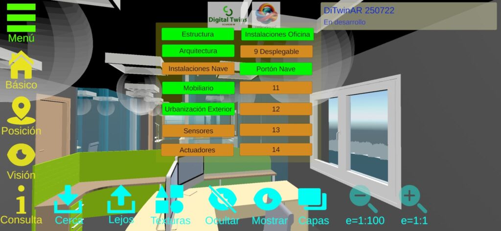 Bajo el título “Gemelo digital de una nave industrial para su monitorización mediante Realidad Aumentada (Internet of Things)”, el proyecto ha alcanzado plenamente los objetivos planteados, consiguiendo integrar con éxito las tecnologías de Building Information Modeling (BIM), Internet de las Cosas (IoT) y Realidad Aumentada (RA) en una plataforma funcional y operativa.